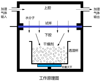 ■ 濕度差:上腔的水分子透過試樣  擴散到下腔